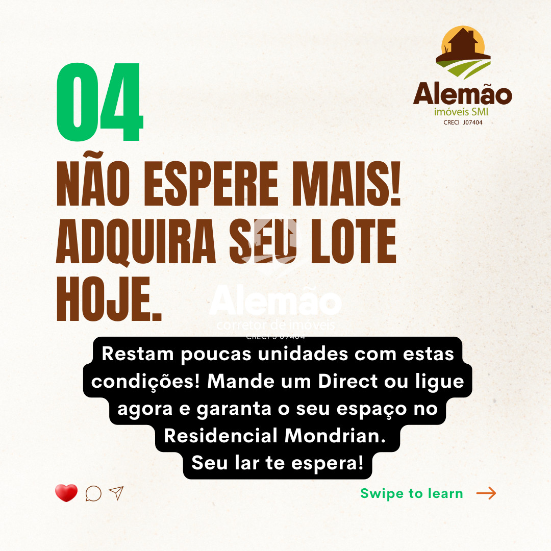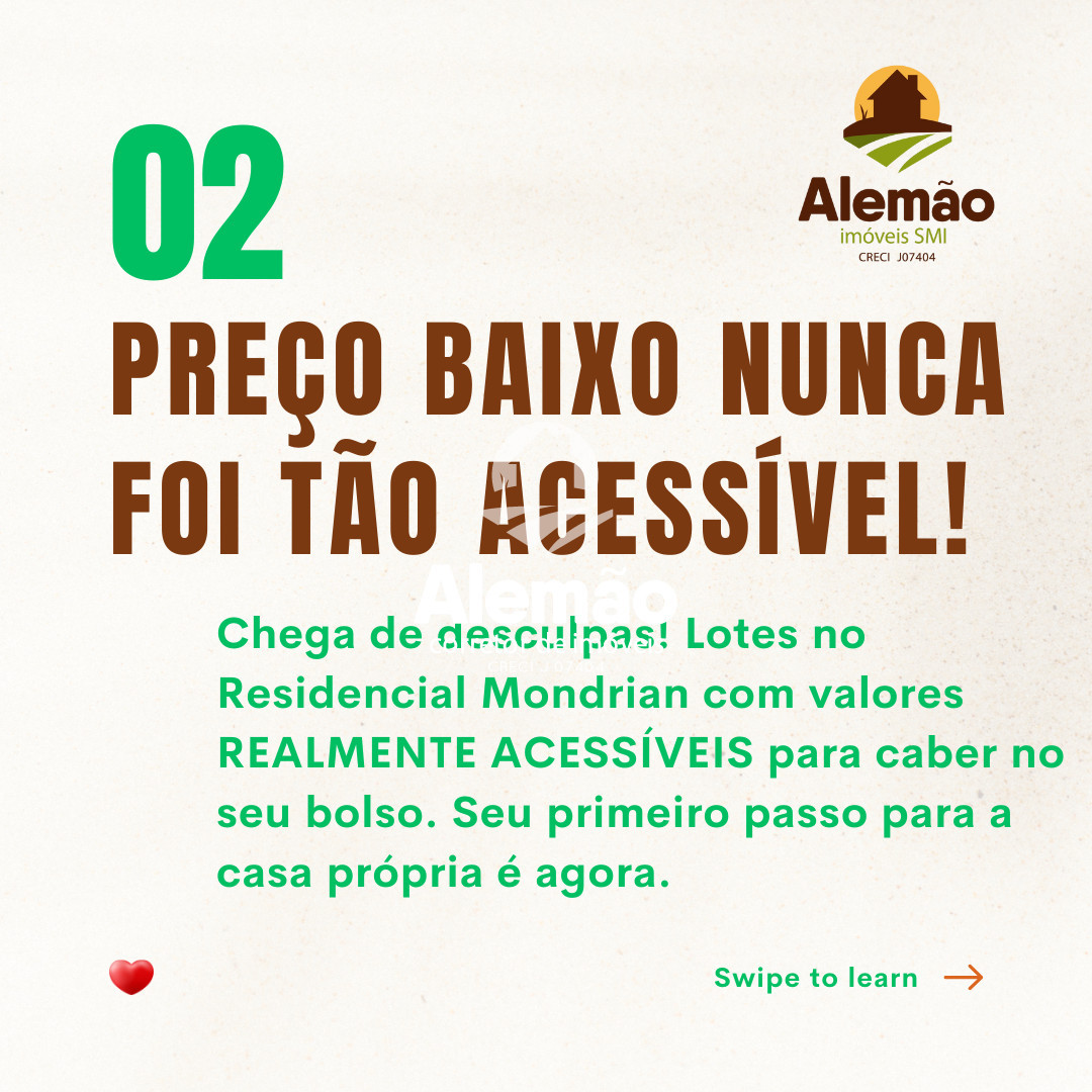 Se o seu sonho é sair do aluguel e construir a CASA PRÓPRIA em um lugar seguro, com potencial de valorização e, o melhor, com parcelas que cabem no seu bolso: O Residencial Mondrian é o seu lugar!